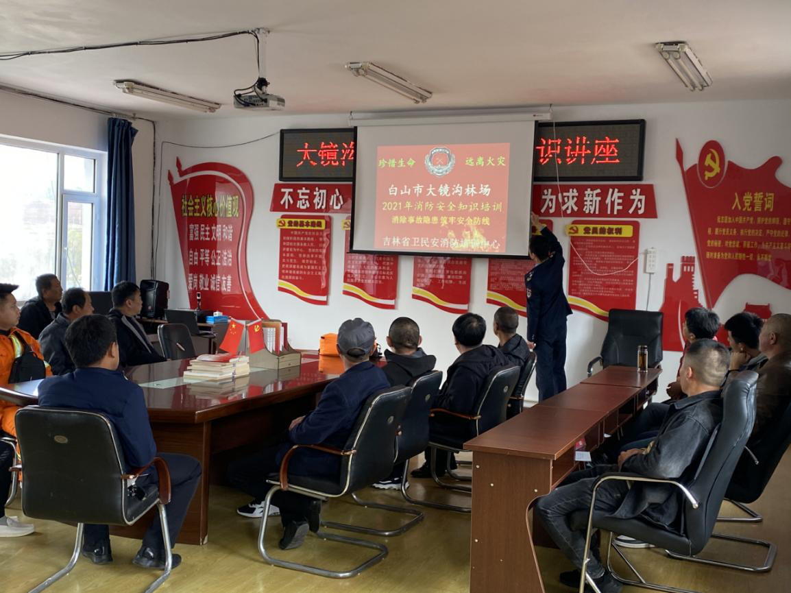 为普及消防安全知识,增强全场干部职工的消防安全意识,5月10日上午,大镜沟林场组织举办了消防安全知识讲座,特邀长春市为民安消防宣教中心的王永光教官为全场干部职工授课。