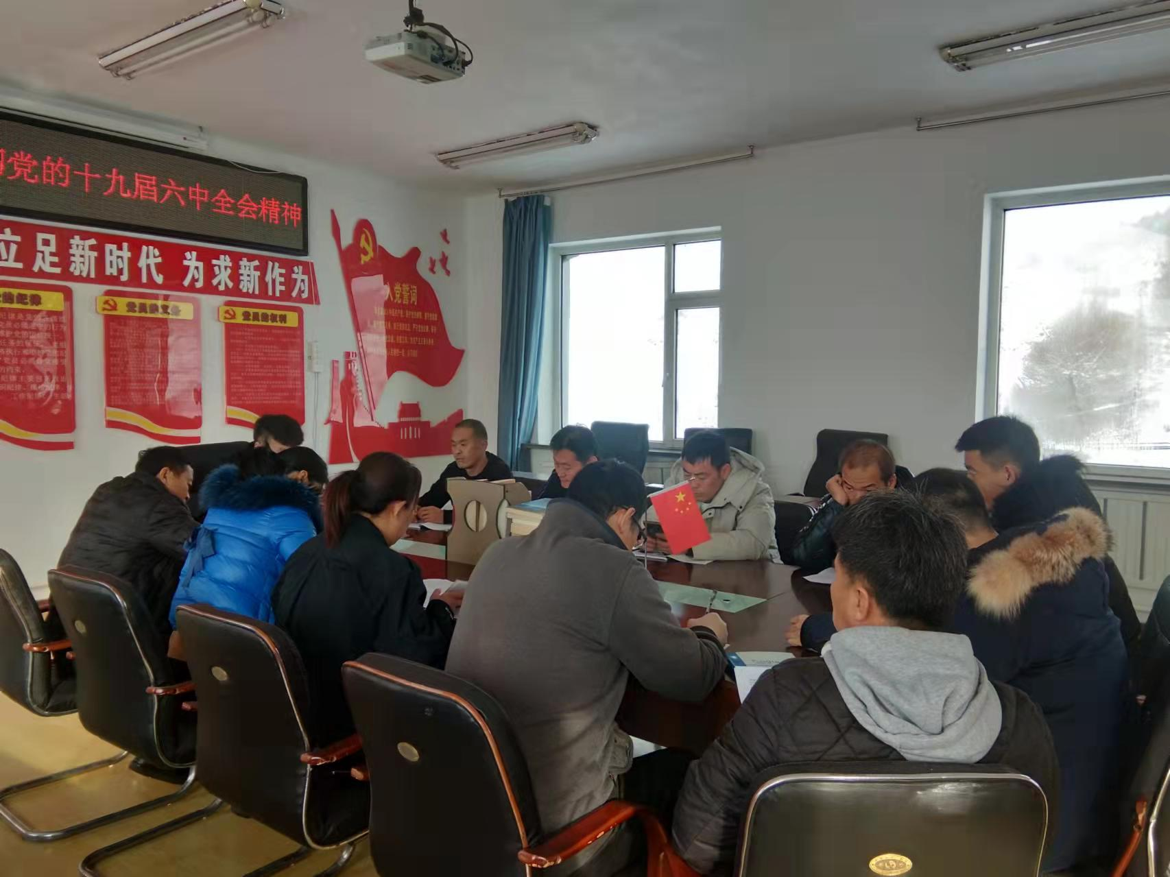 12月1日,大镜沟林场党支部召开党员大会,专题学习贯彻党的十九届六中全会精神。会议由支部书记王铁成同志主持,支部党员和积极分子12人参加学习。