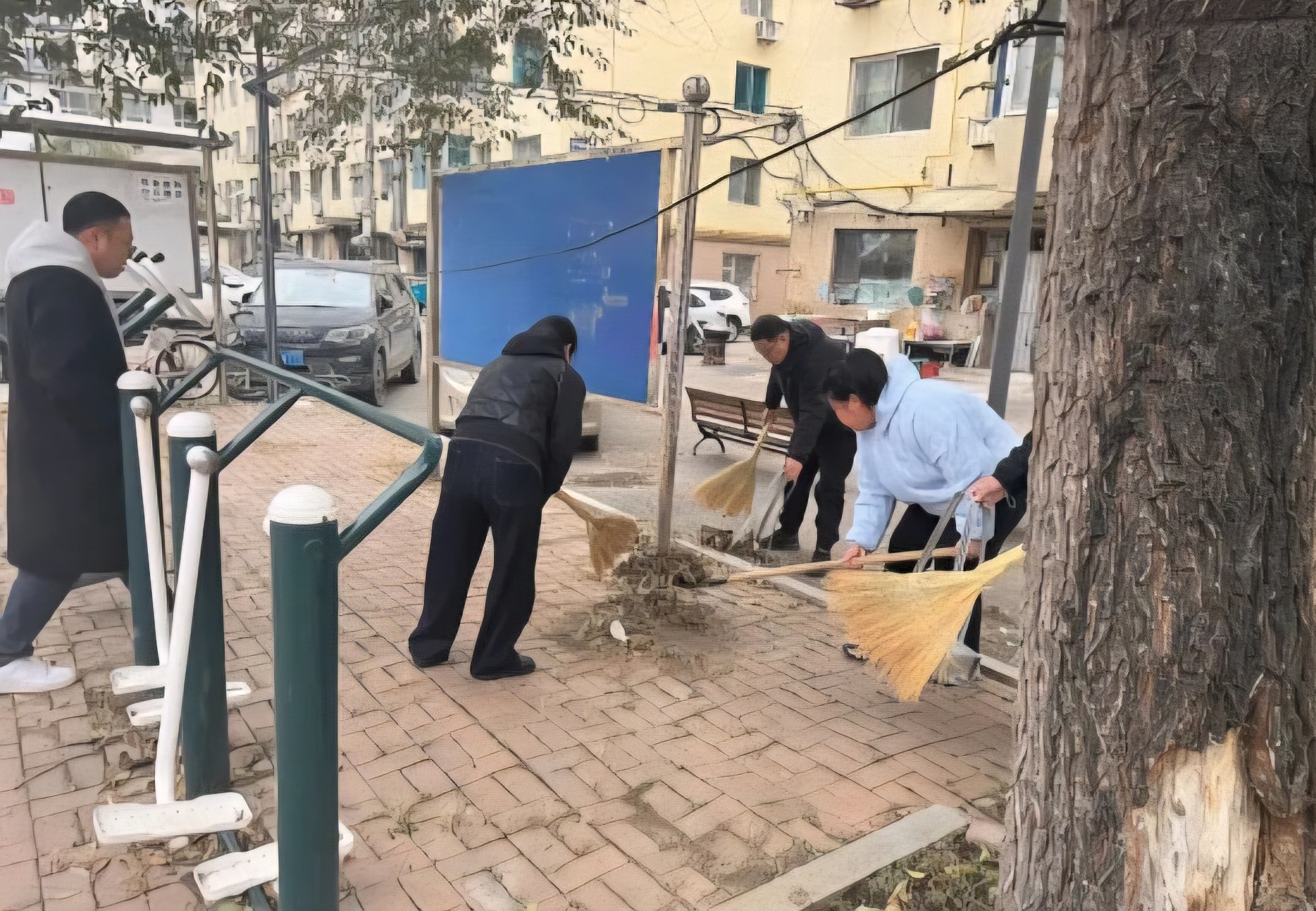 理论学习与文艺创作之余,林场党支部将活动阵地延伸至包保的红星社区,与该社区党支部联合开展了一场热火朝天的环境卫生整治活动。党员志愿者们手持清洁工具,充分发扬不怕脏、不怕累的优良作风,对民中花园内的秋天落叶、白色垃圾等进行了集中清理。大家分工明确,配合默契,有的清扫路面,有的捡拾垃圾,有的搬运杂物,经过一番辛勤劳动,社区环境面貌焕然一新。