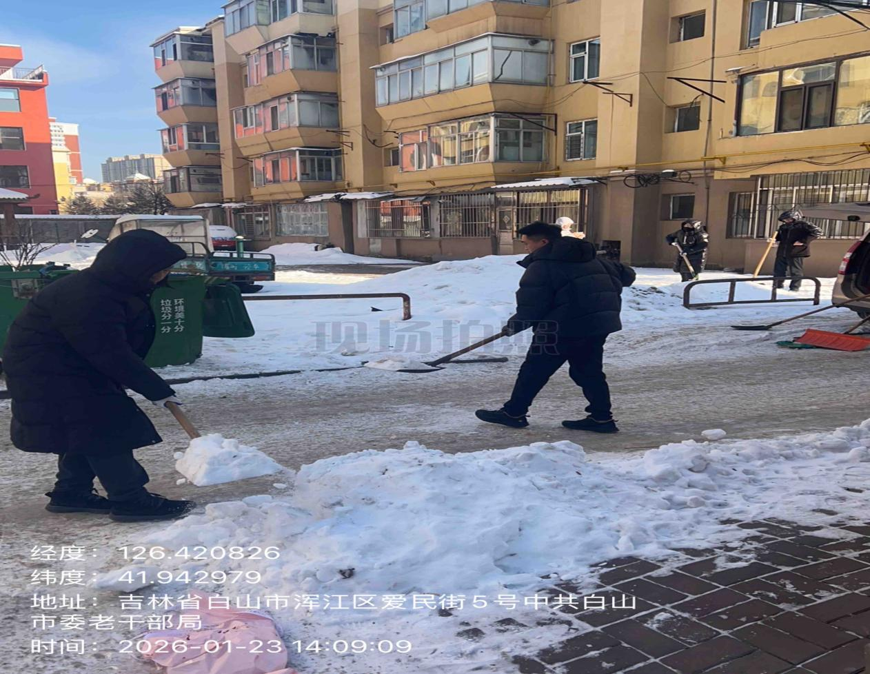 白山市望天鹅国有林总场组织党员干部第一时间奔赴包保社区,同步开展社区清雪除冰和环境整治志愿服务活动,以实干担当践行为民初心。